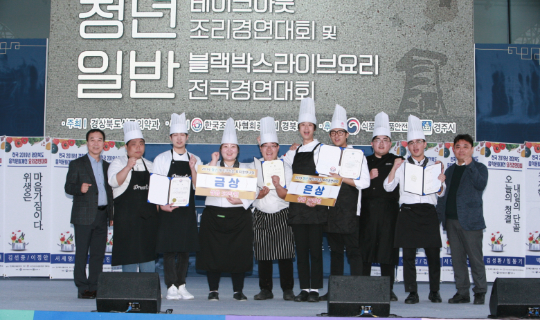 경주대학교 외식·조리학부는 지난 25일 경상북도·한국 조리사협회 중앙회 경북지회가 공동 주관으로 경주 세계문화엑스포공원에서 열린 ‘2019 경북 국제식품박람회 테이크아웃 요리경연대회’에 참가해 경상북도지사상을 수상했다고 밝혔다.이날 대회는 경북지역특산물을 이용해 청년들의 지역음식 메뉴개발에 동참하고, 테이크아웃 음식을 개발·보급함으로써 도내음식 관광발전에 기여하고 청년들의 식문화 발전 및 성공적인 창업과 취업에 도움을 주고자 마련됐다. 이번 대회에서 경주대학교는 전국 대학생 및 일반인 총20팀 중 금·은·동·특별상의 쾌거를 거두었다.특히 금상(경상북도지사상)에는 김승미·장명준 학생이, 은상(경주시장상)에는 김재현·정진혁 학생이 동상(조리사중앙회장상)에는 김선중·이정안 학생이, 특별상에는 김진식·이용희 학생이 수상했다고 밝혔다.경주대 관계자는 “최근의 식생활패턴이 식단변화와 혼밥유형의 외식업의 변화로 테이크아웃이 새로운 문화로 자리잡고 있는 과정에 전국민의 건강성을 확보하고자하는 정부시책에 발맞추어 학생들을 지도했다”고 밝혔다.
