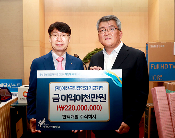 지역 우수 인재육성과 교육환경 개선을 위해 2008년 12월에 설립한 (재)예천군민장학회(이사장 김학동)의 장학기금이 드디어 100억원을 돌파했다. (재)예천군민장학회는 지역인재 양성을 목적으로 설립당시 100억원을 목표로 군민은 물론 출향인, 기관·사회단체, 기업 등 적극적인 기부의 물결이 이어진데 반해 일부 약정자의 기탁금 미납과 2015년부터 기부금법 관련 공개적인 모금활동 제한으로 100억 달성에 어려움을 겪어왔었다. 이번에 100억 원을 돌파하게 된 것은 지난 25일 예천군 보문면 한맥개발(주)에서 2억 2천만 원을 기탁하면서 장학기금 목표를 달성하게 됐다. 기탁된 장학기금 100억 중에는 군 출연금 59억원, 개인 기탁금 10억원, 단체 기탁금 5억, 법인 기탁금 26억원으로 어린이부터 대학생들까지 자신의 용돈을 모아 기부에 동참한 사례, 마을단위 주민들과 출향인들이 앞다투어 기부한 사례, 익명으로 기탁하신 사연 등 지역 교육발전을 위한 전 군민과 출향인들의 훈훈한 사연들이 장학기금에 고스란히 담겨있다. (재)예천군민장학회 김학동 이사장은 “어려운 경제 여건에도 예천의 미래를 새롭게 변화시키기 위한 한 분 한 분의 소중한 정성이 큰 힘이 됐다"며 "기탁해 주신 군민과 출향인 여러분께 감사의 말씀을 드리며 앞으로도 우수 인재육성으로 지역 발전의 토대를 만들기 위한 장학사업 추진에 최선을 다하겠다”고 말했다. 한편, (재)예천군민장학회는 지난 2008년 설립 이후 11년 동안 1420명의 학생에게 12억 4000여만 원의 장학금을 지급했으며 2008년부터 2018년까지 지역우수인재 육성을 위한 인재양성원 운영, 2016년부터 현재까지 24억 7000여만의 지역 교육지원 사업 등 지역교육 발전을 위해 힘써오고 있다.