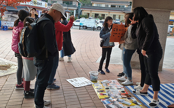 학생들은 지도교사와 함께 엽서와 카메라, 그리고 포토프린터를 준비해 월영교를 찾은 사람들을 대상으로 이번 봉사활동의 취지를 이야기하며 도움을 호소했다.