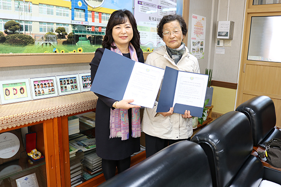 칠곡군 약목면소재 관호초등학교는 최근 교장실에서 김민아 학교운영위원장과 유정연 학부모 대표가 참석한 가운데 학교 주변 임야 주인인 김두희 할머니와 숲 체험 활동 공간 조성을 위한 임야 이용 협약식을 가졌다고 밝혔다.