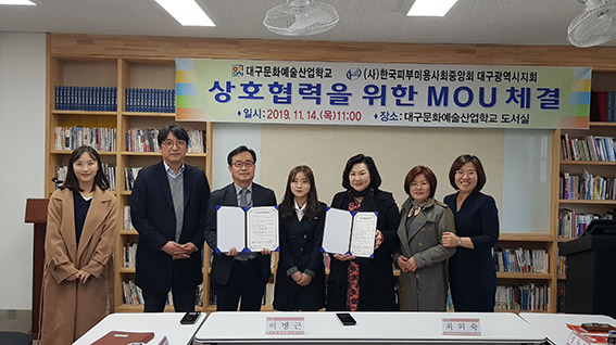 경북기계공업고등학교 부설 대구문화예술산업학교는 지난 14일 (사)한국피부미용사회중앙회 대구시지회와 피부미용분야 인재 양성과 산학협력을 위한 MOU를 체결했다.