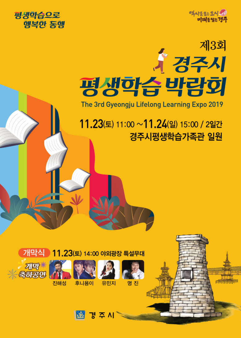 경주시는 오는 23일 오전 11시부터 24일 오후 3시까지 양일간 평생학습가족관 일원에서 ‘제3회 경주시 평생학습박람회-2019’를 연다고 밝혔다.