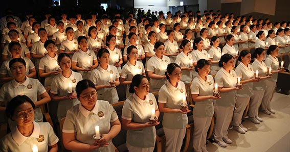 선서식에선 예비 간호사로서 임상실습에 나설 간호학과 2학년생 성세훈 씨 등 127명이 나이팅게일의 숭고한 정신을 상징하는 촛불을 밝히고, 의롭고 헌신적인 간호 활동을 펼칠 것을 다짐했다.