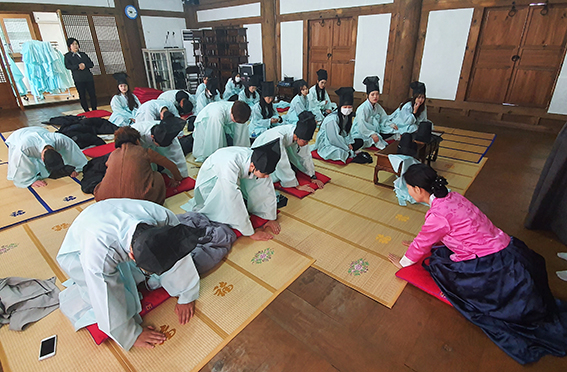 선비정신과 문화를 이해하기 위한 특강(구암서원과 선비)을 시작으로 생활예절교육(의례, 다례), 전통문화체험(전통놀이, 떡메치기), 선비문화체험(명상, 국궁) 등으로 진행됐다.