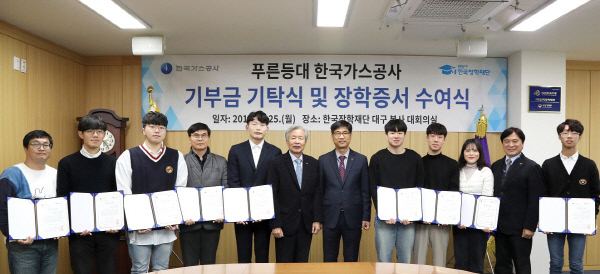 한국장학재단(이하 재단)과 한국가스공사(이하 공사)가 지난 25일 재단 본사 대회의실에서 푸른등대 한국가스공사 기부금 기탁식 및 장학증서 수여식을 가졌다.