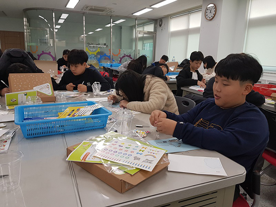 이날 학생 60여명은 전기회로의 구성 원리를 알아보고, 안전한 전기사용에 대한 이해와 전도성 펜을 이용해 간단한 전기회로를 만들어 보며 손전등 및 팝업카드를 만들었다.