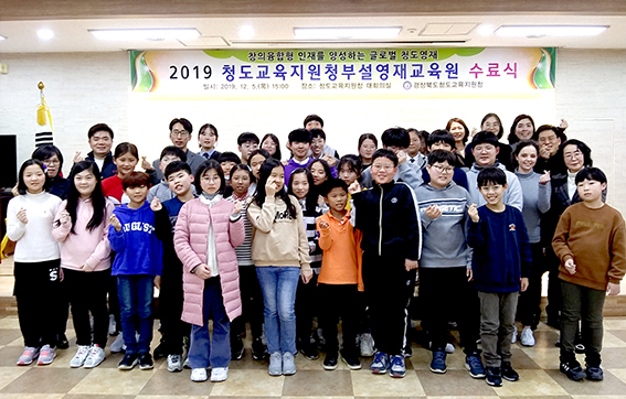 경상북도 청도교육 지원청은 5일(목) 교육지원청 대회의실에서 수료학생 및 학부모, 학교장, 지도교사 등 100여명이 참가한 가운데 2019학년도 청도교육 지원청 부설영재교육원 수료식을 가졌다.