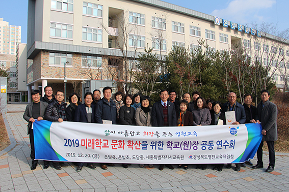 영천교육지원청은 지난 20일 세종시 온빛유치원, 온빛초등학교, 도담중학교, 세종특별자치시교육원에서 미래학교 문화 확산을 위한 학교(원)장 공동연수를 실시했다. 지식보다는 역량, 성적보다는 성장, 경쟁보다는 협동에 중점을 두고 배움과 삶이 하나 되는 교육과정 운영으로 미래지향적 교육을 실현하는 미래학교의 과제를 충실히 이행하고자 실시한 이번 학교장 공동연수는 세종 혁신학교의 철학과 우수 사례를 살펴보는 기회를 가졌다. 세종 혁신학교는 행복한 삶을 가꾸는 민주적 생활교육공동체를 이루기 위해 학생 생활공동체, 학부모 생활공동체, 교사 전문적 학습 공동체로 창의적인 교육과정을 운영하고 있었다.