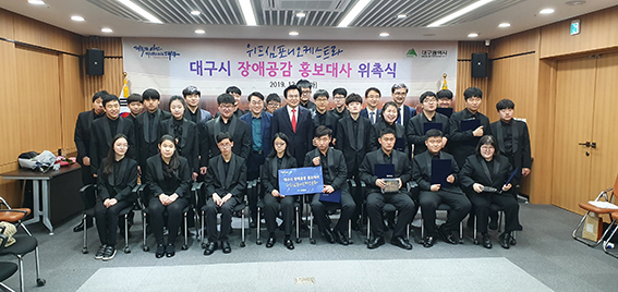 24일 대구 지역 초·중·고 장애학생 30여명으로 구성된 위드심포니 오케스트라가 대구시 '장애공감 홍보대사'로 위촉됐다.대구시교육청에 따르면 위드심포니 오케스트라는 대구시청의 장애공감 확산을 위한 정책과 맞물려 홍보대사로 위촉하는 계기가 됐다.따라서 위드심포니 오케스트라는 앞으로 관내 학교와 교육기관 대상 공연 뿐 아니라, 대구시청 주요행사 시 초청 공연과 장애공감 홍보영상물 모델 활동 등 지역사회 공감메신저로서의 역할을 맡게 될 예정이다.대구교육청 관계자는 "흔히 홍보대사는 유명인으로 위촉되지만, 교육청과 시청의 업무 담당자 간의 협의를 통해 장애학생을 홍보대사로 위촉한 것은 새로운 시도"라며 "우리 학생들을 통해 펼쳐질 따뜻한 장애공감의 장이 확대할 수 있도록 지원을 아까지 않겠다"고 했다.