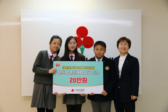 학생들은 "대회에서 받은 상금이 도움이 필요한 친구들에게 쓰여지면 더 보람있을 것 같아 기탁하게 됐다"며 "앞으로도 용돈을 모아 꾸준히 기부하며 널리 세상을 이롭게 하는 사람으로 자라겠다"고 말했다.