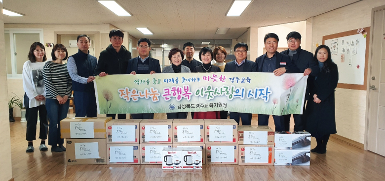 경주교육지원청은 20일 설 명절을 맞아 경주 지역에 소재한 사회복지시설 2곳을 방문하여 사회복지 시설에 필요한 생필품을 전달했다.앞서 경주교육지원청은 매년 명절마다 이웃사랑을 실천하고자 사회복지시설을 찾아 위문하고 있으며, 연중 부서별로 자율적으로 봉사활동을 실천함으로써 지역사회에 나눔 문화를 확산하기 위해 노력해 오고 있다.경주교육지원청 권혜경 교육장은 “작은 정성이지만 복지시설에 실질적인 도움이 되고 따뜻한 마음이 전달될 수 있으면 좋겠다”고 말했다.