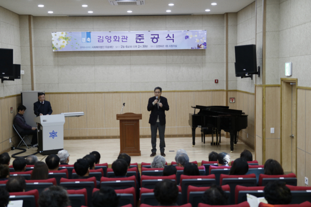 대구 신명고등학교가 4일 다기능교실로 사용할 '김영화관' 준공식을 가졌다.김영화관은 신명고 동문인 김영화(제54회 졸업생)씨가 기부금을 납부하면서 명칭이 정해졌다.지상 4층 규모로 지난해 5월 증축을 시작해 7개월이 지난 지난해 12월 준공했다.이곳은 앞으로 시청각실과 과학실, Wee클래스 교실, 모둠활동실, 연혁관 등으로 활용될 예정이다.김홍구 교장은 "김영화관이 따뜻하고 진취적인 교육공동체로 나아가는데 귀하게 사용되는 교육공간이 되기를 소망한다"고 말했다.
