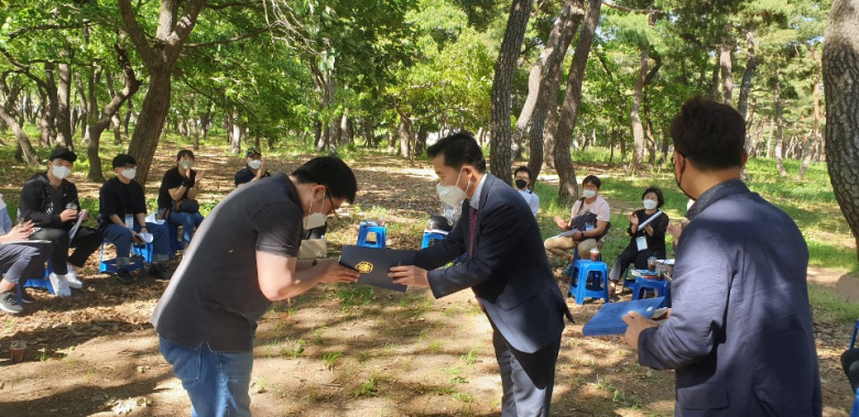 경주교육지원청(교육장 서정원)은 지난 13일 따뜻한 영재! 미래 창의 인재를 키워 나가기 위해 역량중심 영재교육 프로그램 적용 협의회를 코로나 19도 이기고, 솔숲 마음 건강을 지키는 뜰 모임을 황성공원 솔숲에서 영재강사 27명을 대상으로 실시했다.지원청에 따르면 뜰 모임은 협의회는 실내에서 한다는 생각을 바꾸는 것으로 코로나 19 사회적 거리두기를 실천하고, 선생님들의 마음 건강도 함께 가꿀 수 있도록 야외에서 푸른 자연을 벗해 실시하는 모임이다. 이에 따라 경주교육지원청 부설 영재원은 1호 뜰 모임을 통해 과학, 수학, 융합, 발명, 로봇영재반에서 체제와 상호 작용, 에너지와 안정성, 규칙과 질서, 조화와 균형, 에너지와 안정성, 정의적 역량이라는 주제로 역량중심 영재교육 프로그램을 운영하고 있다.전태영 부설 영재교육원장은 “뜰모임과 같이 지금까지의 관행을 벗어나는 다양한 생각 전환을 통해 역량중심 영재교육 프로그램 개발 적용을 통해 4차 산업혁명 시대에 걸맞은 IT 미래기술 영재 육성의 발판을 마련한 것”이라며, “2020학년도 부설영재교육원 수업에 잘 적용하여 경주교육지원청부설영재교육원의 위상을 높여 줄 것”을 당부했다.