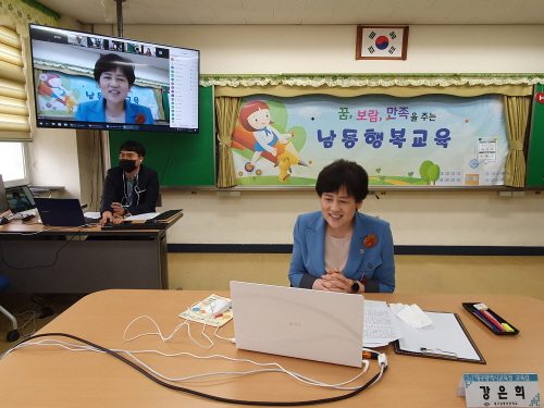 강은희 대구시교육감이 지난 15일 제39회 스승의 날을 맞아 남동초를 방문, 온라인으로 열리는 기념 행사에 참석해 선생님들을 축하하고 격려했다.남동초에서 열린 행사는 6학년 조서현 학생의 '꿈꾸지 않으면' 독창과 4학년 김현아 학생의 '등대지기' 오카리나 연주곡을 시작으로, 다양한 행사가 진행됐다.특히 선생님께 전하는 감사의 편지와 그에 답하는 선생님의 사랑의 답장은 눈시울을 붉혔으며, 올해 2월 학교를 졸업한 졸업생들도 깜짝 등장해 지난 학교 생활을 떠올리며 선생님들께 감사의 마음을 전했다.강 교육감은 남동초에서 교육감 표창을 맏은 임현숙 선생님에게 꽃바구니를 전달한 뒤, 온라인 수업을 통해 미래교육의 가능성을 열어가고 있는 선생님들의 헌신에 대한 감사와 축하의 인사를 전했다.끝으로 온라인 화면을 통해 얼굴을 마주한 학생들에게도 코로나19 상황을 잘 이겨내고 더 크고 높은 꿈과 희망을 키워나가기를 당부하며 학생들과 함께 '스승의 은혜'를 불렀다.한편, 강 교육감은 기념 행사 후 등교 개학 준비를 위한 현장 상황을 점검하고 , 선생님들과 도시락을 먹으면서 '슬기로운 식사생활' 매뉴얼에 따라 시뮬레이션하며 학교 급식을 체험하는 시간도 가졌다.