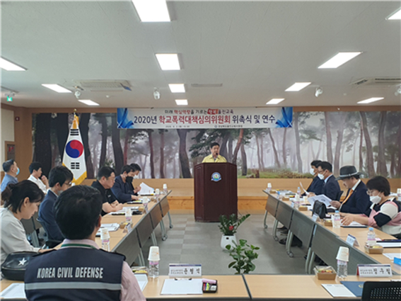 울진교육지원청(교육장 남병훈)은 지난 2일 대회의실에서 2020학년도 학교폭력대책심의위원회 위촉식 및 연수와 이어 제1차 정기회를 개최했다.
