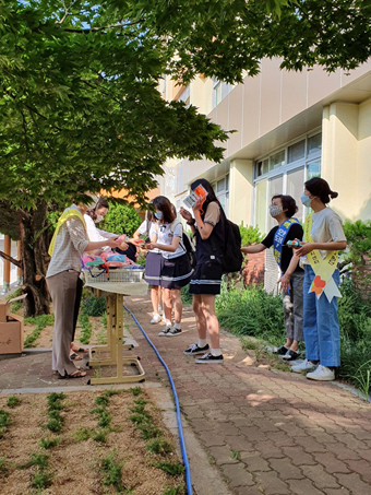 매주 화요일, 목요일 아침 등교 시간 교문에서 진행하던 '아침 등교 맞이' 캠페인을 전교생의 등교 개학에 의미를 두고 실시했다.