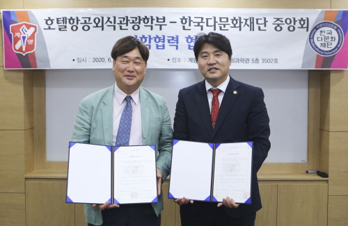계명문화대는 지난 19일 이 대학 호텔항공외식관광학부와 한국다문화재단 중앙회가 베트남의 호텔·리조트 관련 연계 사업 등을 위한 업무협약(MOU)을 체결했다고 24일 밝혔다.행사에는 이원갑 계명문화대 호텔항공외식관광학부장과 권재행 한국다문화재단 중앙회 대표 등 기관 관계자들이 참석했다.양 기관은 기술 및 경영지도에 대한 상호 정보 교환, 기업체 대표 인사의 특강, 학생 현장체험 및 현장실습 기회 제공, 졸업생들의 취업 및 베트남 유학생 연계 등을 추진한다.이원갑 학부장은 "이번 업무협약으로 양 기관이 협력하고 상생할 수 있는 기회를 지속적으로 만들고, 더 나아가 지역공동체가 함께 발전할 수 있도록 최선을 다하겠다"고 말했다.
