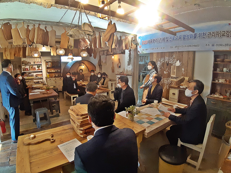 경주교육지원청은 지난 13일 경주 ‘우드인스토리’ 공방에서 지역 내 중․고등학교 교감 35명을 대상으로 “자유학년제 및 진로교육 활성화를 위한 관리자 연수회”를 개최했다. 이날 연수회는 각 학교의 자유학년제 및 교육 과정운영에 방향을 제시하기 위해 마련됐다. 이날 행사에 참여한 한 관계자는 “강사의 교육과정에 흥미를 느끼며 주의 집중해 목공예 체험을 했는데, 학생들에게는 진로를 모색할 수 있는 실질적인 기회가 될 것 같다”고 말했다. 서정원 교육장은 “이번 연수회를 통해 주제선택활동, 예술체육활동, 동아리활동, 진로탐색활동 등 학생 활동중심의 교육과정으로 이루어지는 자유학기제를 이해하고 교육과정에 효율적으로 잘 녹아내는 의미 있는 시간이 되기를 바란다”고 말했다.