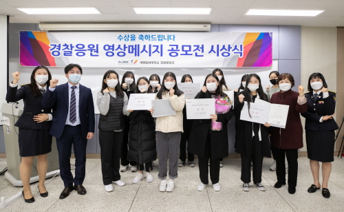 계명문화대는 지난 5일 경찰행정과가 '제1회 경찰응원 영상메시지 공모전' 시상식을 열었다고 8일 밝혔다.이번 공모전은 신종 코로나바이러스 감염증(코로나19) 확산 속에서 고생하는 경찰에게 감사하는 마음을 전하는 '경찰 응원 영상메시지'를 주제로 실시됐다.서울, 부산 등 전국에서 고교생 100여명이 글, 그림, 노래 개사, 경찰서 방문 등 다양하고 창의적인 방식으로 응원 영상메시지를 제작해 참가했다. 심사는 공정성을 위해 현직 경찰관 등을 심사위원으로 위촉했다.금상에는 대구 서부고등학교 3학년 이다영 학생이, 은상에는 서울 경복비즈니스고등학교 2학년 윤예희 학생이, 동상에는 대구 영송여자고등학교 1학년 김가연 학생이 각각 차지했다.이들 수상자에겐 상장과 상금 외 경찰행정과 진학 시 수업료 감면(금상 80%, 은상 50%, 동상 30%) 혜택이 제공된다. 참가자 전원에게도 30만원의 장학금을 지급하는 특전을 부여할 방침이다.이다영 학생은 "공모전 참여를 통해 경찰의 사명에 대해 다시 한 번 생각하게 됐다"며 "어릴 때부터 품어온 경찰의 꿈이 더 커졌다"고 소감을 전했다.