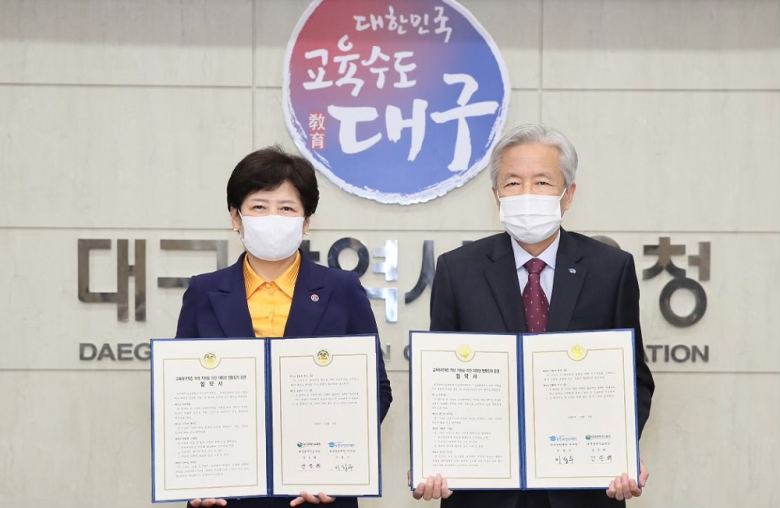 한국장학재단이 8일 대구시교육청과 교육취약계층 청소년 지원을 위해 업무협약을 체결했다. 이날 협약식은 이정우 한국장학재단 이사장, 강은희 대구시교육감과 양 기관 관계자들이 참석한 가운데 열렸다. 협약을 바탕으로 양 기관은 ▲안정적인 대학생 멘토 모집·관리 ▲교육취약계층 멘티 발굴을 통한 정서․학습 지원 ▲멘토링 운영에 필요한 정보 교류 및 홍보 등을 함께 추진해 나갈 예정이다.이정우 재단 이사장은 “이번 협약이 교육취약계층 청소년의 학업동기를 강화하고 교육격차를 해소하는 데 도움이 될 것으로 기대한다”며 “양 기관의 상호 협력으로 멘토와 멘티를 적극적으로 모집해 지역사회와 동반성장할 수 있도록 힘쓰겠다”고 밝혔다.강은희 교육감은 “교육취약계층 청소년에게 동등한 교육기회를 제공하기 위해 노력하는 한국장학재단 이사장과 관계자분들께 감사함을 표한다”고 했다.