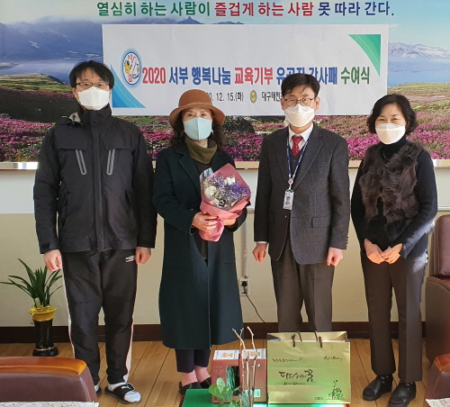 대구 서부교육지원청이 재능, 봉사, 자원, 프로그램, 정(情) 기부로 이뤄진 교육기부 5대 영역에서 큰 도움을 준 개인 5명과 기관·단체 2곳을 '2020 서부 행복나눔 교육기부 유공자'로 선정했다.유공자는 ▲6년간 교통안전지도 봉사 및 감사의 꽃 만들기에 재능을 기부한 이수연씨 ▲4년간 돌봄교실 학생들에게 NIE 수업을 한 지난영씨 ▲4년간 교통안전지도 봉사 및 교육활동 행사에 지원을 한 류은형씨 ▲3년간 학생들의 심리적 안정을 위해 식물자원 기부와 재능기부 수업을 한 권귀영씨 ▲올해 학교스포츠클럽 선수들을 지원하기 위해 자원 지원을 아끼지 않고 해 준 최순상씨 ▲4년간 어려운 학생들에게 장학금과 쌀 등을 지원한 광장새마을금고 ▲취약계층 가정의 학생들에게 장학금과 쌀(부식) 등을 지원한 태전성당 사회복지위원회 등 7명(기관·단체)이다.황윤식 교육장은 "관내 여러 유관기관과 기부자 분들의 도움으로 나눔과 배려의 학교문화가 조성돼 감사의 마음을 전하고 싶다"고 말했다.
