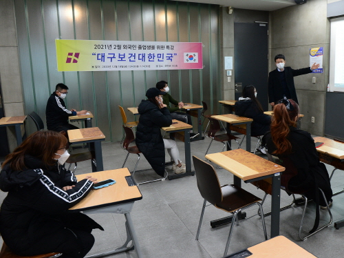 대구보건대는 지난 18일 대학 연마관에서 외국인 유학생 대상 '대구보건대한민국' 특강을 가졌다고 지난 21일 밝혔다.이번 특강은 내년 2월 졸업을 앞둔 외국인 유학생들이 새로운 환경에서 안정적인 한국생활을 유지할 수 있도록 도움을 주기 위해 마련됐다.특강에선 이력서 작성법, 비자취득 안내, 범죄피해 예방교육, 한국생활정보 안내 등이 소개됐다.뷰티코디네이션학과 2학년 하오(27·베트남)씨는 "사회인으로 한국생활에 첫 발을 내딛는다는 생각에 걱정이 컸는데 특강에서 알려준 다양한 정보가 큰 힘이 될 것 같다"며 "2년간의 유학생활에 도움을 준 국제교류원과 전공을 살려 취업할 수 있게 도와준 학교 교수님께 감사드린다"고 말했다.김경용 국제교류원장(사회복지과 교수)은 "이번 특강이 졸업을 앞둔 외국인 유학생들의 고민을 해소하고 새출발에 디딤돌이 되길 바란다"며 "문화적·언어적 어려움 속에서도 학업과 기술연마에 매진한 외국인 유학생들이 글로벌 인재가 되길 바란다"고 전했다.
