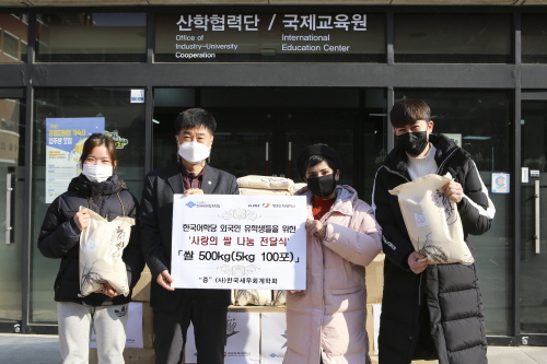 한국세무회계학회가 지난 21일 코로나19로 어려움을 겪고 있는 계명문화대 외국인 유학생들을 위해 쌀(5kg) 100포를 기부했다.이날 전달한 쌀은 한국세무회계학회가 최근 제48차 동계학술발표대회 및 총회를 열고 축화화한 대신 기증받은 것이다. 계명문화대는 사랑의 쌀 나눔 전달식을 통해 외국인 유학생 100명에게 쌀을 나눠줬다.쌀을 전달받은 한국어학당 그레이라그나(베네수엘라) 학생은 "경제 사정이 넉넉하지 않아 생활비 일부를 벌어가며 학업을 해야 하는데 코로나 때문에 여러가지로 무척 힘든 시기"라며 "이런 어려운 시기에 대학과 여러 단체에서 도움을 주셔서 간사하다"고 했다.윤우영 한국세무회계학회장은 "낯선 한국 생활과 학업을 이어가는 외국인 유학생들에게 조금이나마 보탬이 되길 기원한다"고 말했다.