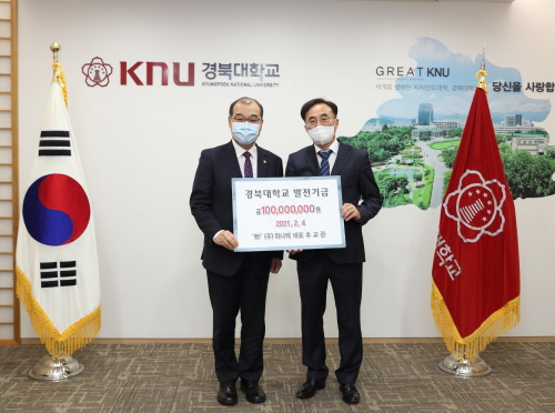 추교관 위니텍 대표가 지난 4일 후배들을 위한 장학기금 1억원을 경북대에 전달했다.이날 전달식엔 홍원화 경북대 총장, 추교관 위니텍 대표, 이동수 전 경북대 총동창회장 등이 참석했다.이날 전달한 기금은 (재)경북대 총동창회효석장학회에 적립돼 경북대 학생들을 위한 장학금으로 사용될 예정이다.추 대표는 경북대 전자공학과 80학번으로 현재 경북대 총동창회 사무총장을 맡고 있다.추 대표는 "어렵게 공부하던 시절은 지났다. 다양한 경험을 한 사람이 더 많은 기회를 갖는 것이 당연하다"면서 "돌아가신 효석 조운해 선배님의 큰 뜻을 따라 많은 후배들에게 더 넓은 세상을 보여주고 싶다. 작지만 큰 꿈을 품는 후배들에게 힘이 되길 바란다"고 했다.한편, 고(故) 조운해 전 경북대 총동창회장이 개인 기금을 출연해 1995년 설립한 효석장학회는 2019년 경북대총동창회효석장학회로 확대 개편됐다.효석장학회는 설립 이래 현재까지 경북대 학생 1000여명에게 약 16억원의 장학금을 지급했다.