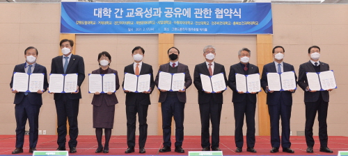계명문화대는 지난 17일 그랜드플라자 청주호텔서 전국 8개 전문대학과 교육성과 공유를 위한 업무협약(MOU)을 체결했다고 지난 18일 밝혔다.강원도립대, 거제대, 경인여자대, 서일대, 수원여자대, 안산대, 전주비전대, 충북보건과학대 등이다.협약에 따르면 급변하는 교육환경에 대응할 수 있도록 교육의 질과 교육성과 제고 방안을 공유해 상호발전을 도모하는 등 공동발전을 위해 협력한다.이들 대학은 ▲데이터 기반 성과관리 자료, 연구 성과 등 학술정보의 상호 교류 ▲교육 및 연구 인력의 상호 교류 ▲교육 프로그램·콘텐츠 공동 기획 및 개발 ▲학생교류 및 상호 학점 인정 ▲세미나·학술회의·심포지엄 등의 공동개최 ▲시설 및 기자재의 공동 활용을 함께 한다.