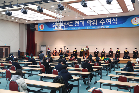 국립안동대학교(총장 권순태)가 지난 19일 국제교류관에서 ‘2020학년도 전기 학위수여식’을 개최했다.