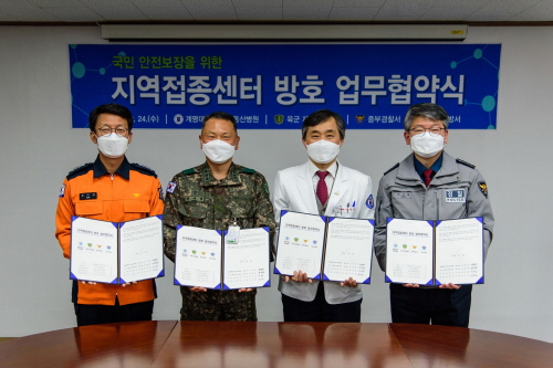 계명대 대구동산병원은 24일 중부경찰서, 중부소방서 등 지역 유관기관과 코로나19 백신 경계 업무에 대한 협약을 체결했다고 밝혔다.이날 협약은 내달 백신접종센터가 본격적으로 백신접종을 시작하는 가운데 백신의 안전한 수송과 관리에 대한 국민들의 걱정과 불안을 해소하고자 진행됐다.협약서엔 백신 반입, 보관, 반출에 대한 현장 경계, 상황실 운영 등에 대한 내용이 구체화 됐다.
