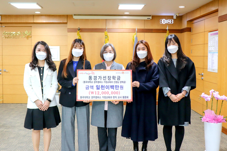 동국대 경주캠퍼스 가정교육과 현직 교사 동문회는 25일 백주년기념관 화백홀에서 동경가선장학기금 1200만원을 전달했다.