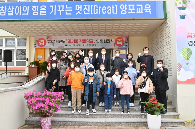 경북교육청이 25일 포항 양포초등학교에서 농산어촌 소규모 학교 살리기 ‘꿈키움 작은 학교’ 인증 제1호 현판식을 개최했다.