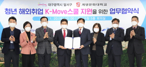 계명문화대가 최근 고용노동부와 한국산업인력공단이 주관하는 '2021년 K-Move스쿨' 운영기관으로 선정돼 7년 연속 선정되는 쾌거를 달성했다.K-Move스쿨 사업은 청년들의 성공적인 해외취업을 지원하는 연수사업으로 계명문화대는 2015년부터 7년 연속 선정이라는 성과와 함께 올해 1억5700만원의 정부지원금을 받게 됐다.또 K-Move스쿨 사업의 성공적인 운영을 위해 지난 1월20일 대구 달서구청과 'K-Move스쿨 지원 업무협약'을 체결해 구청으로부터 지원금 2000만원을 지원받는 등 자체대응투자금 포함 총 1억8900만원의 예산을 마련했다.계명문화대는 올해 K-Move스쿨 사업으로 '말레이시아 글로벌 기업체 인력양성 연수과정'을 운영, 국내 어학연수 및 국외(호주, 말레이시아) 직무교육 등 해외기업과 연계한 맞춤형 해외취업 프로그램을 제공한다.더 많은 지역 청년들에게 해외취업의 기회를 제공하기 위해 연수 참가대상은 기존 재학생에서 달서구 거주 청년(전문대졸 이상)으로 확대해 오는 5월까지 총 20명을 선발할 계획이다.교육 프로그램은 6월부터 본격적으로 시행하며, 교육 이수자들을 대상으로 말레이시아 주요 도시(쿠알라룸푸르, 페낭)에 있는 글로벌 IT 기업과 글로벌 온라인 여행사에 취업을 지원한다.박승호 총장은 "코로나19로 중지됐던 해외취업이 최근 재개된 가운데 K-Move스쿨 운영기관 선정은 해외취업 활성화에 큰 동력이 될 것"이라며 "7년 연속 운영기관으로 선정된 대학의 노하우와 우수한 인프라를 기반으로 지역 청년들의 해외취업을 적극 지원하겠다"고 말했다.