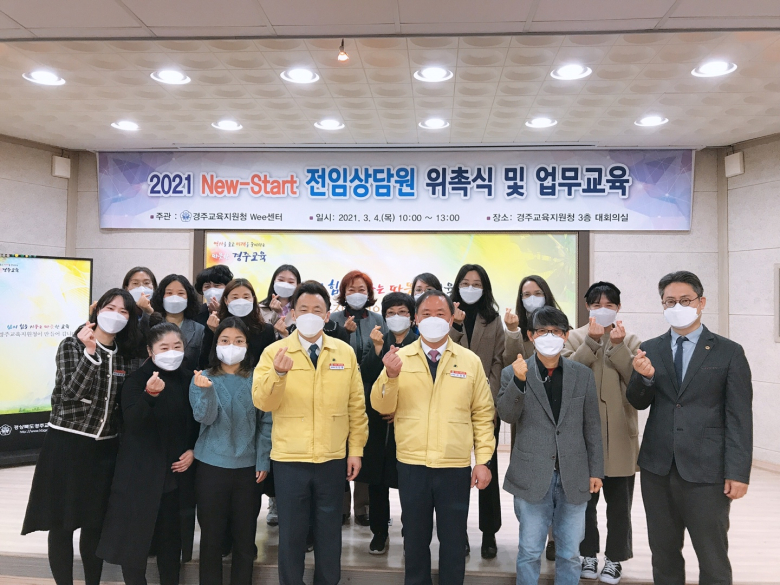 경주교육지원청 Wee센터는 지난 4일 경주교육지원청 대회의실에서 2021년도 New-Start 프로그램 전임상담원 15명을 대상으로 위촉식 및 업무교육을 실시했다.New-Start 프로그램은 경북교육청에서 학업중단숙려제 활성화를 위해 내세운 특색사업이다.이번 프로그램은 학업중단 위기를 겪는 학생들을 대상으로 하며 1:1 맞춤형 상담, 심리검사, 다양한 체험 등 숙려의 기회 제공과 신중한 고민 없이 성급하게 이뤄지는 학업중단을 예방하고자 마련됐다.경주Wee센터는 학업중단 위기학생 및 각종 학교 부적응 상담을 위해 서류·면접전형을 거쳐 15명의 전임상담원을 선별해 위촉했다.위촉된 전임상담원들은 올해 3~12월까지 학업중단 예방을 위해 다방면으로 힘쓸 예정이다. 업무교육은 New-Start 프로그램의 이해 및 전임상담원의 역할에 대한 안내, 상담원으로서의 자세를 주제로 이뤄졌다.서정원 경주교육지원청 교육장은 “New-Start 전임상담원들의 상담역량을 충분히 발휘한 체계적인 상담적 개입을 통해 학업중단의 기로에 놓인 학생들의 올바른 선택을 돕고 학교적응력을 향상해 건강한 사회인으로 성장할 수 있도록 노력해줄 것을 부탁한다”고 말했다.