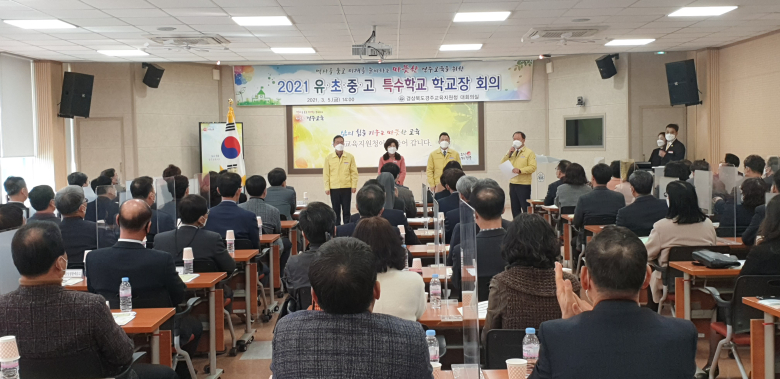 경주교육지원청은 지난 5일 대회의실에서 유·초·중·고·특수학교의 학교장 84명을 대상으로 ‘2021 상반기 유·초·중·고·특수학교 학교장 회의’ 를 가졌다.이번 회의는 이달 1일자로 시행된 인사이동에 따라 경주교육지원청 승진, 전입 및 이동한 학교장의 소개와 상반기 경주교육 주요업무에 관해 설명하고 의견을 나누고자 마련됐다. 이번 회의에선 학사일정 정상화에 따른 등교 수업 확대, 원격 수업 질 제고, 학생 생활 중점 지도사항, 돌봄교실 운영, 학교지원센터 운영, 유아교육 관련 공모사업 안내 등이 논의됐다.서정원 경주교육지원청 교육장은 "코로나로 인해 더욱 힘들어진 교육현장을 흔들림 없이 지켜줘 감사의 뜻을 전하고, 지역의 환경과 특색을 바탕으로 한 아이도 놓치지 않고 삶의 힘을 키우는 따뜻한 교육이 일선 현장에서 따뜻한 경주교육이 실현될 수 있도록 교육과정 중심의 학교 경영에 최선을 다해달라"고 당부했다.