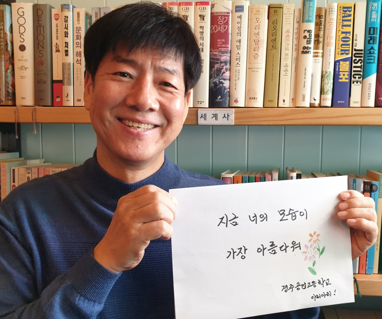 경주공업고등학교가 신학기를 맞이해 본관 외벽에 '지금 너의 모습을 가장 좋아해'라는 문구가 적힌 대형 글판을 걸었다고 9일 밝혔다.글판은 가로5m, 세로10m의 크기로 제작됐으며 글씨체는 만학을 응원하는 마음을 담아 칠곡군의 성인문해교육생인 권안자 어르신체로 제작됐다.이에 칠곡할매글꼴의 홍보대사인 정재환 성균관대학교 교수는 칠곡할매글꼴 활용과 응원에 대한 답장으로 '지금 너의 모습이 가장 아름다워. 경주공업고등학교 아리아리(파이팅을 대신하는 순우리말)'라는 친필메시지가 담긴 사진을 보냈다. 이국필 경주공고 교장은 “앞으로 재학생 디자인 공모전을 통해 ‘따뜻함’과 ‘다양성’이 지속적으로 전달될 수 있도록 운영하고, 우리 학생들과 지역에 귀감이 되는 글판이 되도록 하겠다”고 말했다.