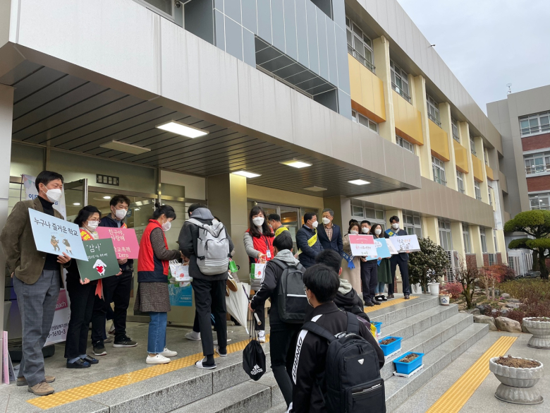 청소년상담복지센터에서는 학생들을 응원하기 위해 선물(마스크, 물티슈, 양치세트, 간식거리 등)을 제공해 주었다. 선생님들의 따뜻한 응원과 아침 맞이 인사는 학생들에게‘나는 사랑받고 있다’는 긍정적인 느낌을 고취시키고, 건강한 자존감을 형성할 수 있다. ‘아침 등교 맞이’캠페인을 통해 소외되거나 상처받은 친구들과 마음이 힘든 친구들에게 먼저 다가가 인사하고 격려하며 힘이 되어 준 날로 기억될 것이다. 아침 맞이에 참여한 김모(3학년)학생은 “작년에는 코로나19로 인해 학교 등교 일수가 적어 아쉬웠는데 올해는 정상 등교를 해서 친구들과 선생님들을 만날 수 있어 정말 행복하다”라는 소감을 밝혔다. 2학년 이모(2학년)학생은 “후배들이 생겨서 기분이 좋고, 아침에 선생님들이 반갑게 맞이해주시니 학교가 활기찬 느낌이 든다”라고 하며 또 다른 소감을 밝혔다.