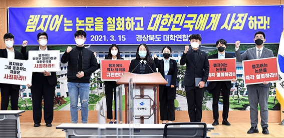 경상북도대학연합이 하버드대 로스쿨 램지어 교수를 규탄하는 성명을 발표하고 램지어 교수가 논문을 자진 철회하고 피해자들에게 즉각 사과할 것을 강력하게 촉구했다.