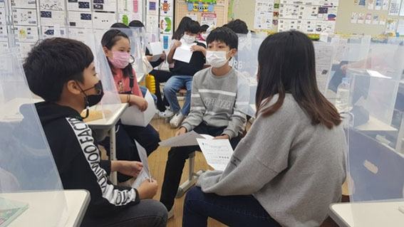 학년협력형 프로젝트를 운영한 성주초등학교 5학년 학생들은 ‘스쿨존 지나는 쌩쌩 자동차! 꼼짝마!’라는 주제로 국어, 수학, 미술 교과를 통합한 문제해결형 학습으로 진행했다.