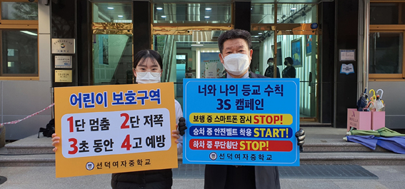 청소년 교통안전을 위해 ‘1단멈춤! 2쪽저쪽! 3초동안! 4고예방!’의 문구가 적힌 피켓을 들고 찍은 인증샷을 SNS에 업로드하는 것으로 청소년 교통사고 중 가장 많이 발생하는 횡단 중 사고를 예방하기 위한 행동 요령을 기억하기 쉬운 숫자에 맞춰 표현했다.