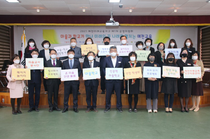 예천교육지원청(교육장 이학승)은 26일 교육지원청 3층 대회의실에서 이학승 예천교육장, 김학동 예천군수를 비롯한 운영위원 20명이 참석한 가운데 2021 예천미래교육지구 제1차 운영위원회를 개최했다.예천미래교육지구운영위원회(공동위원장 예천교육지원청 교육장, 예천군수)는 예천지역 내 민·관·학의 다양한 주체 참여를 통한 참여와 소통을 통한 마을교육 생태계 조성을 위해 구성됐다.이날 운영위원회는 예천미래교육지구 운영위원 소개와 2020년 사업 경과보고, 마을교사 소감발표, 2021 예천미래교육지구 운영 사업 및 정책 방향 제시 및 발전 방향에 대해 논의하는 시간을 가졌다.2021 예천미래교육지구 3대 주요 사업으로는 소통과 협력의 ‘예천교육거버넌스구축’, 지역 특성을 반영한 ‘예천특화교육과정 운영’, 학교와 마을을 잇는 ‘예천 온마을학교’를 운영함으로 학생들에게 교육, 문화, 예술 등 다양한 분야의 미래교육이 운영된다.이학승 교육장은 "2020년도가 마을교육 공동체 활성화와 아이들이 꿈을 갖고 성장할 수 있는 기틀을 마련했다면 2021년도는 마을이 교육 지원 주체가 되어 쉼 없는 노력과 성장을 기대하고 예천교육청은 마을교육 공동체에 대한 무한한 신뢰와 지원으로 명품 교육으로 이끌도록 더욱 노력하겠다"고 말했다.또한 김학동 예천군수는 "앞으로의 교육은 지역사회와 학교가 함께 유기적으로 움직일 때 발전할 수 있고 예천미래교육지구 사업이 미래의 학생을 키우며 지역을 풍요롭게 하는데 이바지할 수 있기를 기대한다"며 "군에서도 아이들의 교육에 무엇보다 최우선으로 협력하겠다"고 말했다.