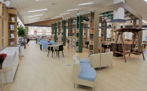 계명문화대 도서관에 마련된 '책다락(冊多樂) 카페'가 학생들의 '핫플레이스'로 떠오르고 있다.교정이 보이는 도서관 안에서 독서뿐만 아닌 개인 스터디와 친구들간의 토의, 휴식까지 즐길 수 있는 모든 구조를 갖췄기 때문이다.이 카페는 지난 2017년 도서관 4층의 일부 공간을 활용해 이용됐으나 학생들의 높은 인기에 올해 2월부터 대대적인 리모델링이 진행, 지금은 층수 전체를 활용하고 있다.카페는 크게 스터디 라운지, IT 라운지, 휴식 라운지 등 3개 구역으로 나뉜다.스터디 라운지는 스터디 카페를 방불케하는 스마트하고 쾌적한 학습공간으로 꾸며져 있다. 베스트셀러 도서 비치, 노트북 및 스마트 기기 사용이 가능한 개인스터디 책상, 간식을 먹으며 자유롭게 대화하고 토론할 수 있는 테이블과 공간 등이 마련됐다.IT 라운지는 PC 및 프린터기, 엑티브러닝룸 등이 마련돼 있어 과제와 자료 작성, 출력 등이 가능하다. 또 학습자 중심의 엑티브러닝룸에서는 그룹 스터디와 세미나, 프로젝트 수업 등을 할 수 있다.휴식 라운지는 신발을 벗고 올라가 편안하게 앉거나 누울 수 있는 덧마루와 함께 라운지 양쪽에 있는 테라스에 간결하면서도 세련된 조경이 특징인 하늘 정원이 마련됐다. 학생들이 교정을 내려다보며 독서하거나 휴식, 힐링까지 할 수 있게 했다.윤희경 도서관장은 "책다락 카페는 학생들이 쾌적하고 편안한 분위기 속에서 독서와 학습을 통해 성장하고 서로 공감하며 소통하는 문화를 만들어가는 복합문화공간"이라며 "학생들이 독서와 휴식을 통해 에너지를 충전하고 꿈을 키울 수 있도록 책다락 카페 활성화와 도서관 서비스 강화를 위해 최선을 다하겠다"고 말했다.