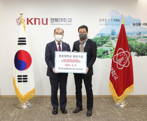 전해영 화인종합건축사무소 대표가 9일 홍원화 경북대 총장실에게 발전기금 1000만원을 기탁했다.발전기금은 '리하임스칼라쉽 장학기금'으로 적립돼 건축학부 소속 재학생을 위한 장학금으로 사용될 예정이다.