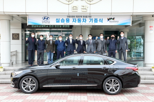 영남이공대는 지난 15일 대학본관에서 현대자동차 교육용 차량 기증식을 가졌다고 18일 밝혔다.이날 기증식에는 이재용 영남이공대 총장과 신원산 현대자동차 대구지역본부장 등이 참석했다.이들은 교육용 차량인 제네시스 G80의 기증식을 갖고 산학협력 확대를 위한 상호 지원 및 인적교류를 약속했다.제네시스 G80은 향후 스마트e-자동차과의 실습 기자재로 활용해 전문기술인 양성과 기술연구 등 다양한 교육자료로 사용될 예정이다. 영남이공대 스마트 e-자동차과는 현대자동차와 2000년부터 산학협력을 맺고 오랫동안 다양한 실습용 차량과 기자재들을 기증받고 있다. 특히 2012년 정비기술인력 위탁교육 협약체결을 통해 매년 엔진진단코스, 섀시진단코스, 전기전자진단코스 위탁교육을 실시하고 있다.이번 기증식을 통해 양 기관은 변화하고 있는 미래 자동차 산업에 요구되는 전문지식과 실무역량을 갖춘 현장맞춤형 인재를 육성하는 방안을 논의했으며, 인재 및 기술의 적극적인 교류를 약속했다. 이재용 총장은 "자동차 산업 발전을 위해 교육실습용 차량을 기증해주신 현대자동차에 감사드린다"며 "앞으로도 지속적인 현장실습과 현장맞춤형 교육으로 자동차 전문기술인력 양성에 최선을 다하겠다"고 말했다.