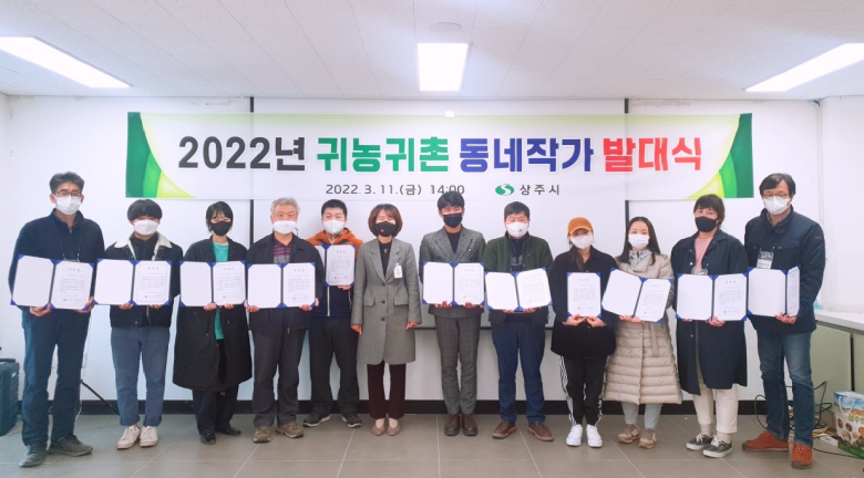 상주시는 지난 11일 상주서울농장에서 올 한 해 동안 도시민 유치를 위한 홍보활동을 수행할 귀농귀촌 ‘동네작가’ 발대식을 개최했다. 귀농귀촌 ‘동네작가’는 농촌지역에 거주 중인 귀농·귀촌인과 시민을 중심으로 농촌에서의 생활, 농업 현장, 귀농귀촌 정착사례, 지역 및 경관 소개, 공동체 활동 등 농촌지역만의 차별화된 콘텐츠(사진, 영상, 게시 글, 카드뉴스 등)를 직접 제작해 귀농귀촌종합센터 홈페이지(www.returnfarm.com)와 개인 SNS에 게시하게 된다. 상주시에서는 개인 페이스북, 블로그, 유튜브 등 SNS의 친구 및 방문자 수, 프로그램 활용 여부, 활동 계획 등을 기준으로 평가해 귀농귀촌 ‘동네작가’ 12명을 선정하였다. 이번에 선정된 ‘동네작가’는 홍보전략, 콘텐츠 작성방법 등 역량강화 교육을 받은 후 본격적인 활동에 들어갈 예정이며 1인당 월 최대 15만원(5만원/콘텐츠 1건당)까지 수당을 지원받는다. 상주시 관계자는 “귀농귀촌 ‘동네작가’가 귀농이나 귀촌을 꿈꾸는 도시민들에게 농촌의 생생한 현장 정보와 다양한 매력을 알려 귀농·귀촌인과 농촌관광객을 유치하는 길잡이 역할을 톡톡히 할 것으로 기대된다.”라고 했다.