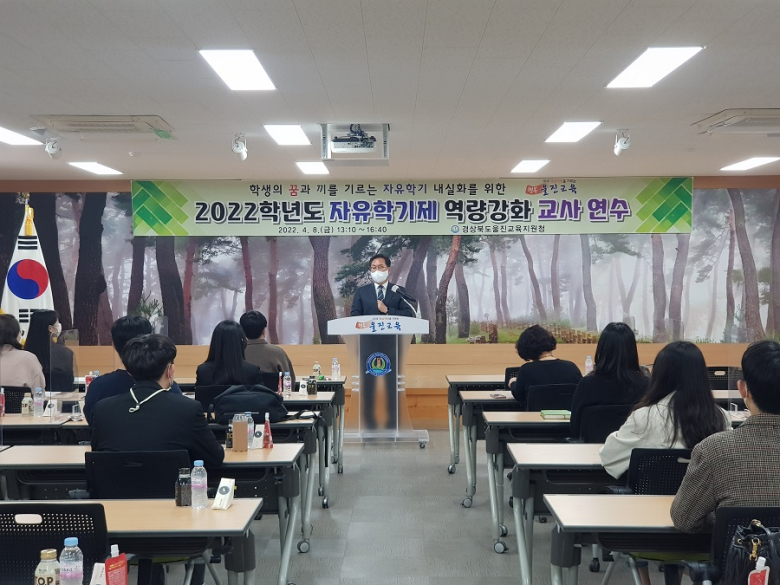 울진교육지원청은 지난 8일 중학교 자유학기제 업무 담당자와 신규교사를 대상으로 2022학년도 자유학기제 역량강화 교사 연수를 실시했다.이번 연수는 신규교사가 많은 울진지역의 특성을 고려해 맞춤형 연수로 준비됐다. 연수는 문경서중학교 김진연 선생님의 자유학기제 학생활동 중심 수업과 포항제철중학교 김태수 선생님의 자유학기와 학교문화라는 강의와 함께 자유학기제에 대한 질의, 응답으로 진행됐다.권오진 교육장은 “이번 역량강화 연수를 통해 내실 있는 자유학기제 운영의 기반이 조성되기를 기대하며, 앞으로 학교 현장 지원을 위해 적극적으로 노력하겠다”라고 밝혔다.