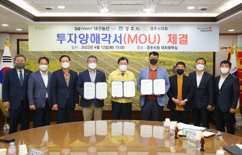 경주시가 대구농산㈜의 본사를 경주로 이전하고 투자금액 300억원, 50명의 신규 일자리창출을 골자로 한 경주공장 신설 투자 양해각서(MOU)를 12일 체결했다.