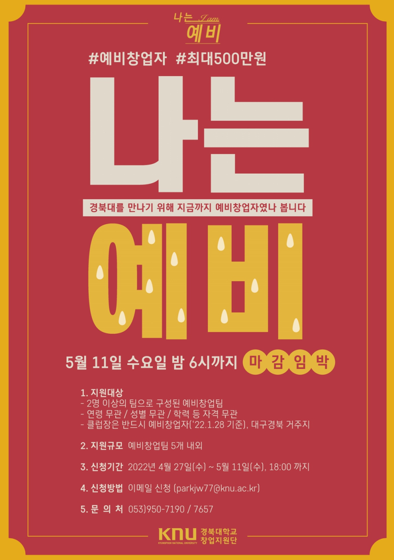 5개 팀 내외를 선발하며 신청은 오는 5월 11일 오후 6시까지 이메일로 접수 가능하다.