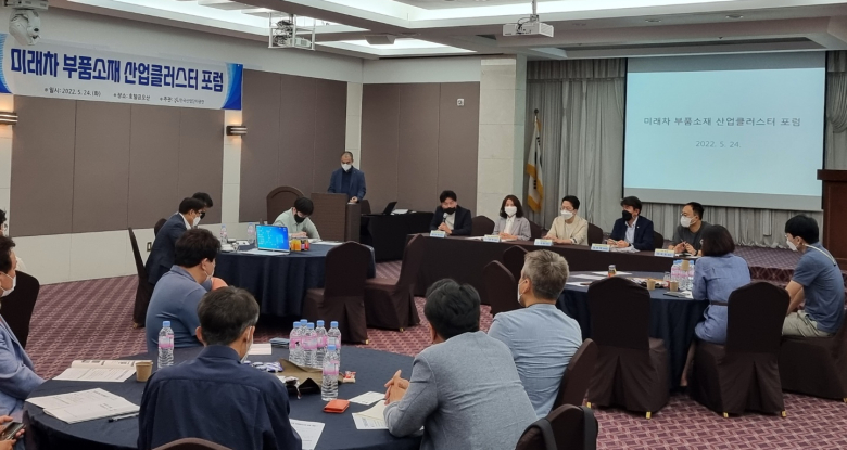 한국산업단지공단 경북지역본부(이하 산단공 경북본부)가 지난 24일 오후 구미 호텔금오산 사파이어홀에서 미래차 부품·소재 관련 기업 및 기관 담당자 30여 명이 참석한 가운데 ‘구미 미래차 부품·소재 산업클러스터 포럼’을 열었다.이날 포럼은 구미시, 구미전자정보기술원, 금오공대 등 산·학·연 전문가들이 모여 의견수렴을 통해 성공적인 미래차 부품·소재 산업클러스터를 구축하고 기술동향 및 최신 기술정보 공유와 융합아이템 발굴 등을 위해 마련됐다.포럼 내용은 ‘자동차산업 전환기 대응을 위한 미래차 부품·소재 산업클러스터 구축’을 주제로 신기술 신제품 개발 및 상생 협력 방안, 기술 경쟁력 향상 등에 대한 발표와 토론이 이뤄졌다.경북테크노파크 이영주 박사는 ‘자동차 산업 시장 전망과 2차전지 정책방향’을 주제로 관련 기술 동향과 차세대 배터리 리사이클링 규제자유특구 사업 전반을 설명했다.